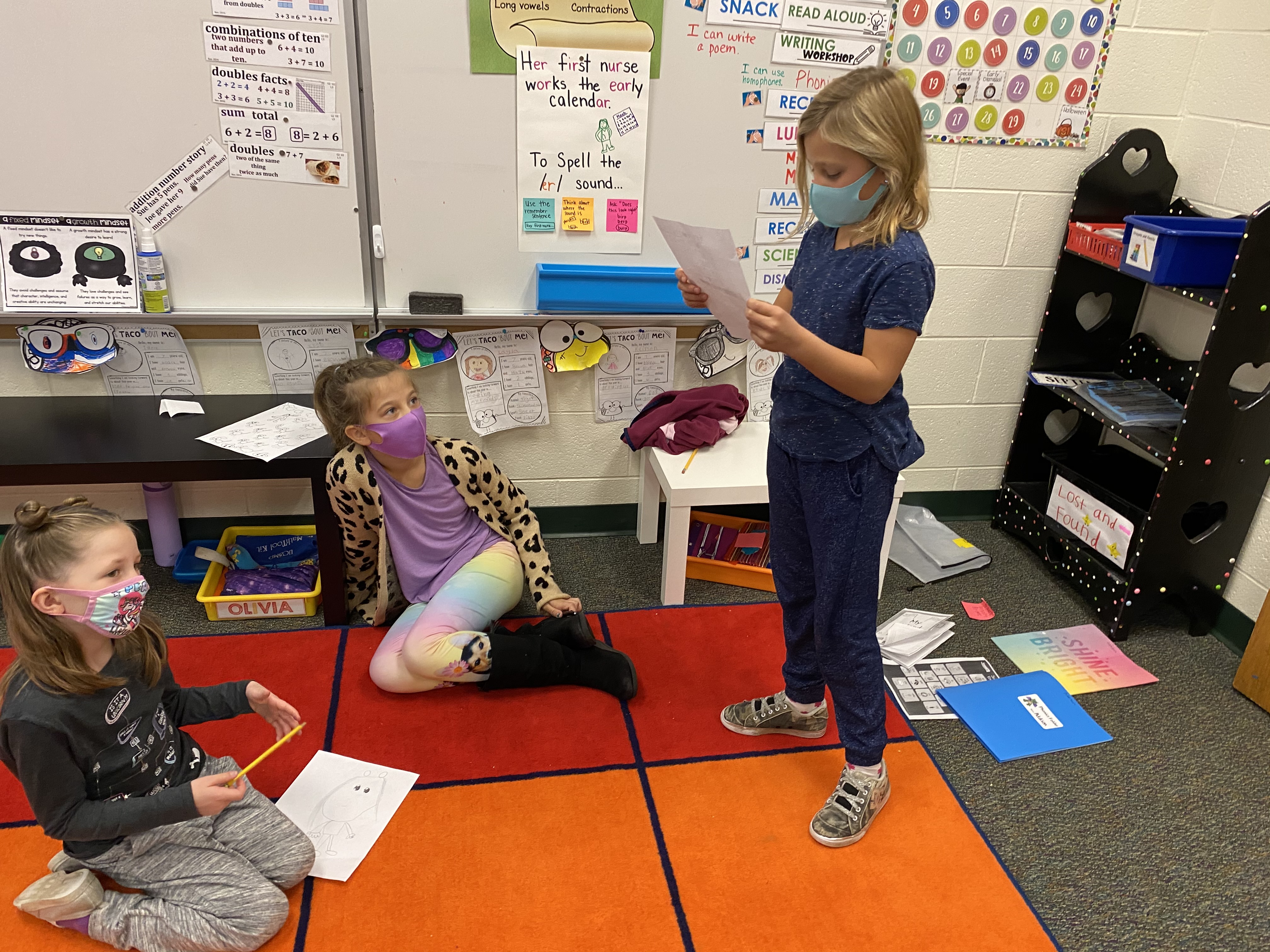 We also started to explore homophones (words that sound the same but are spelled different). We learned about homophones through several jokes. Kids loved giggling and listening to how these words are easy to mix up! For example, why was 7 afraid of 9? Because he ate eight.