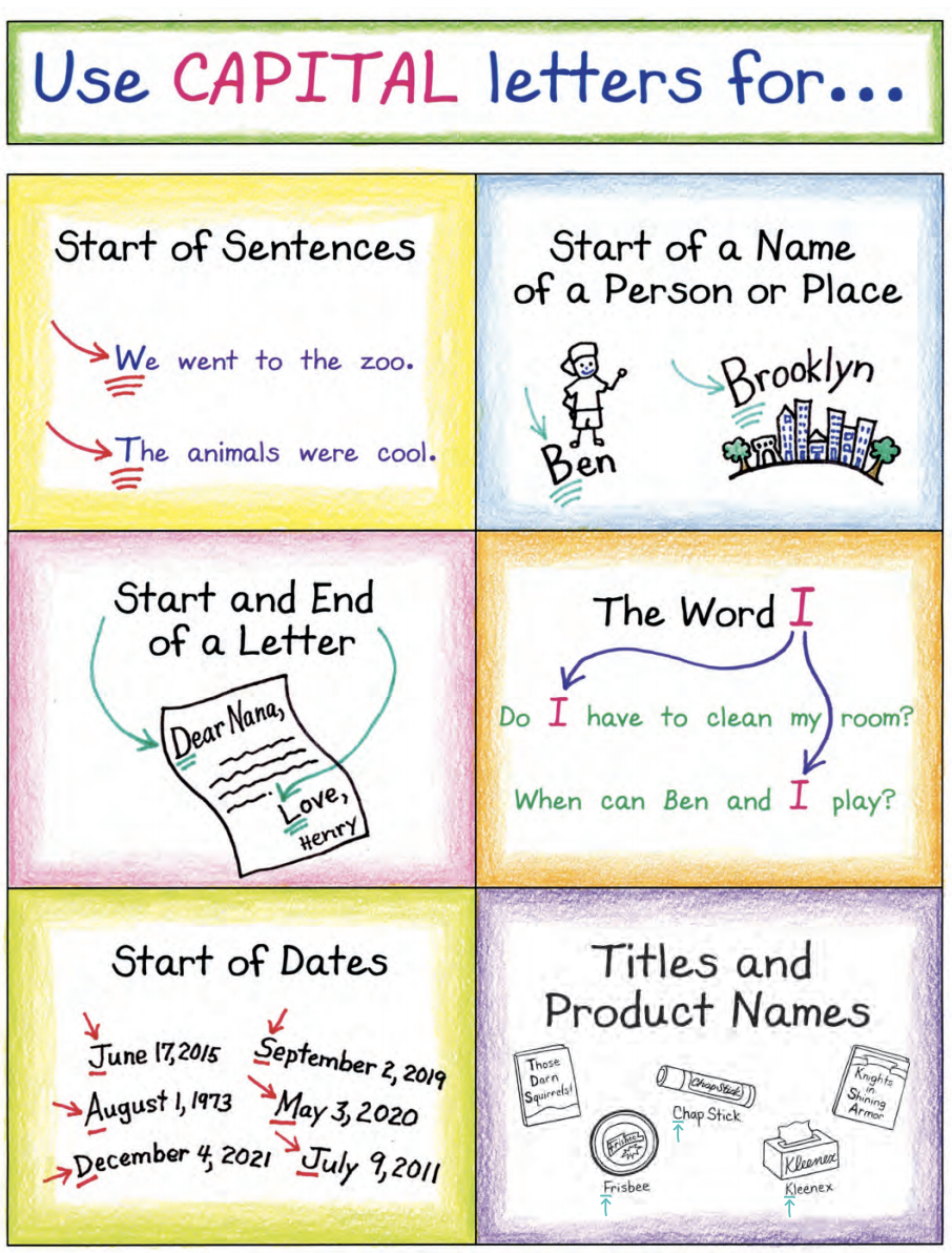 In Phonics Workshop we learned all about capital letters and where we might find them! We don’t just see them at the beginning of a sentence or someone’s name, but we find them in lots of other places! Students learned about these special rules and went on a hunt to find them as well as write them!